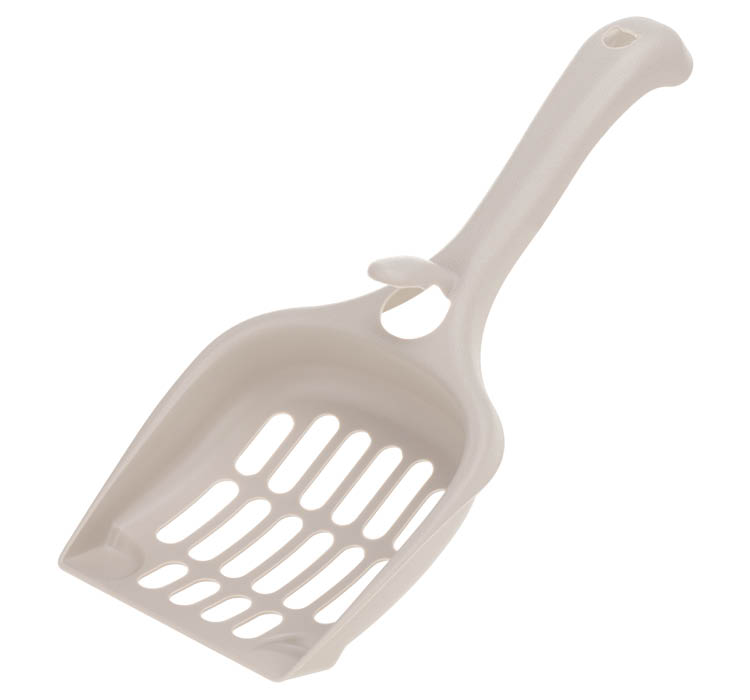 У совка есть крючок для его крепления на рамку лотка для кошек.