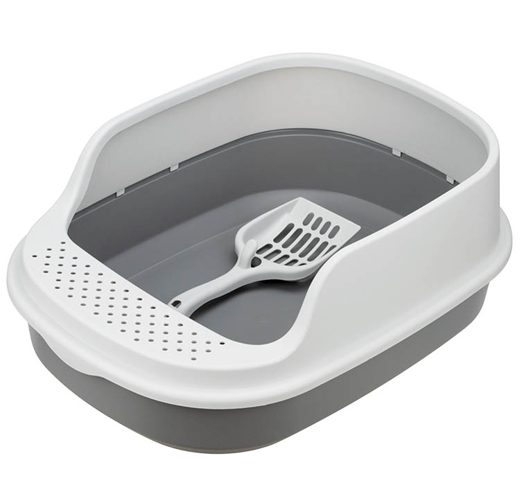 Лоток предназначен для кошек маленьких и средних пород, которые любят копаться в наполнителе. Изделие состоит из лотка и рамки. В упаковке есть подарок — совок для уборки. Рамка с высоким бортом 10 см закрывает лоток с трёх сторон. Верхний край имеет скруглённую форму. Благодаря этому наполнитель при интенсивном разбрасывании остаётся внутри лотка. На рамке есть порожек с отверстиями. Проходя по нему остатки наполнителя задерживаются и лапы питомца остаются чистыми. Поверхность изделия имеет специальную поверхность Soft–touch, которая хорошо моется. Изделие продаётся упакованным в индивидуальный пакет с клеевым клапаном. В разработке изделия принимал участие зоопсихолог. Подробнее