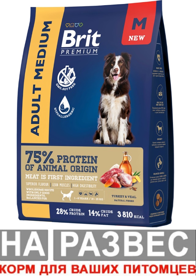 Корм Брит ПРЕМИУМ РАЗВЕСНОЙ МЕДИУМ Индейка и Телятина для собак 1кг