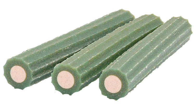 Мнямс DENTAL "Зубные палочки" с хлорофиллом – вкусное и полезное лакомство для взрослых собак и щенков старше 3-х месяцев. Обладают высокой вкусовой привлекательностью, предотвращают появление зубного налета, обеспечивают деликатный массаж десен. Благодаря хлорофиллу в составе, способствуют снижению кровоточивости десен, дезодорирует